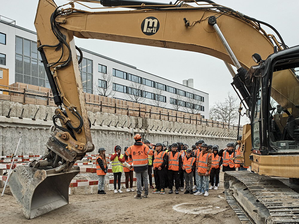 Tre classi della scuola Bethlehemacker di Berna visitano il cantiere in Guisanplatz 1. I sopralluoghi riservati alle scolaresche sono una nuova offerta che permette di scoprire il mondo dei mestieri nell’edilizia.